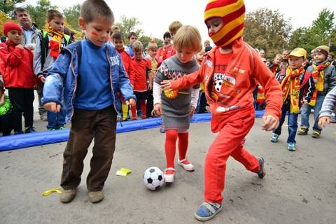 А ровно в 13 часов 15 минут площадь у красно-желтого фонтана перед входом на Центральный стадион превратится в территорию детского спортивного праздника.