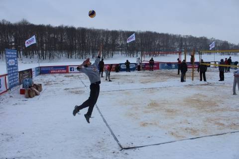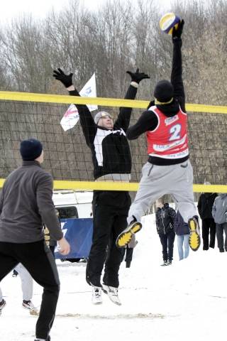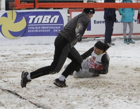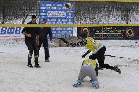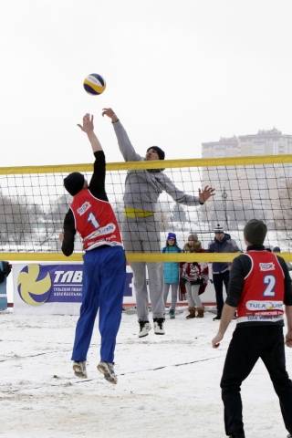 В турнире по пляжному волейболу на снегу принимают участие 12 мужских команд (24 человека). И если в прошлом году были только тульские спортсмены, то в 2017-ом на соревнования приехали московские волейболисты, есть даже представитель Вьетнама. Судят матчи спортсменки волейбольной команды «Тулица».