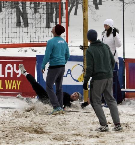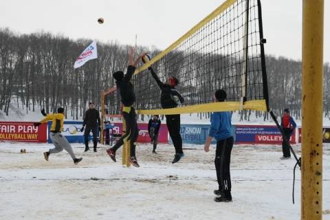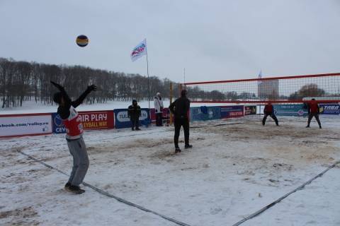 В эти минуты в ЦПКиО им. П.П. Белоусова проходит 4-й турнир по пляжному волейболу на снегу. Организатор турнира - компания "Медиа-Траст".