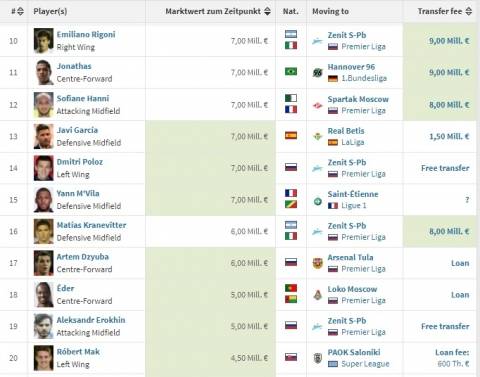 А среди игроков, сменивших клуб за последнее время - на 17 месте: