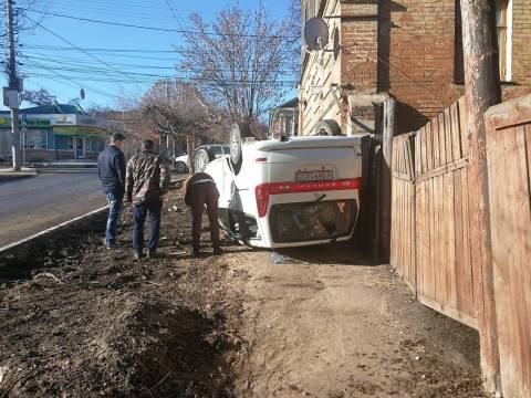 Утром 7 апреля в Туле, на пересечении улиц Пушкинской и Жуковского произошло ДТП: в результате столкновения с ехавшей в поперечном направлении "Ладой" перевернулся автомобиль "Ниссан Серена": ударом его вынессло на пешеходную часть улицы.