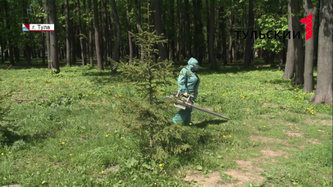 Специалисты обрабатывают тульские парки и общественные места от клещей при помощи специального аппарата: он нагревает ядовитую жидкость до парообразного состояния.