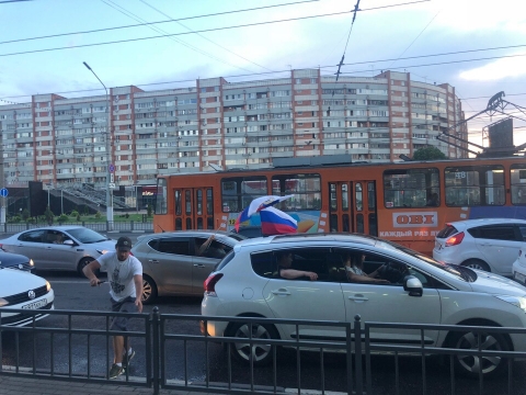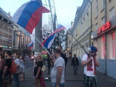 Флаги и ликование: туляки на улицах отмечают победу российской сборной