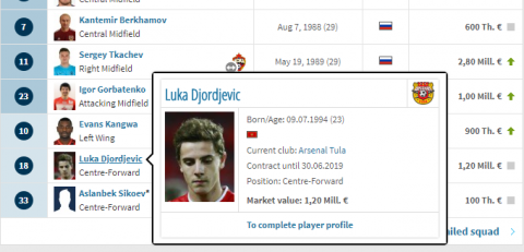 Как сообщает портал Transfermarkt, тульский "Арсенал" заключил годовой контракт на аренду черногорского футболиста, нападающего петербургского «Зенита» и сборной Черногории Луки Джорджевича. Играть он будет под номером 18.