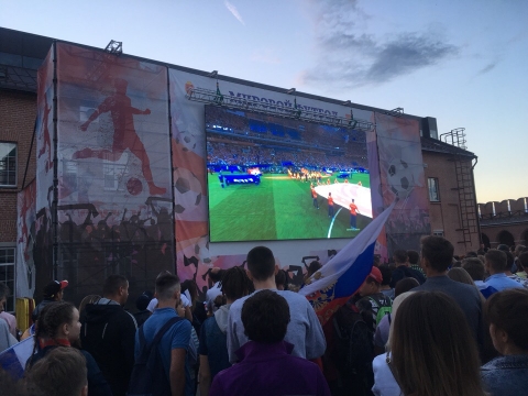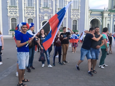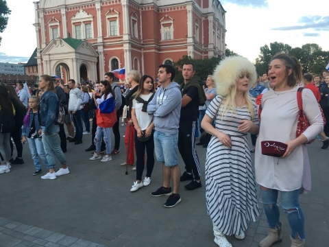 В Туле на территории кремля в эти минуты стартовал показ матча "Россия - Хорватия". Поддержать нашу команду пришли несколько сотен туляков. Болельщики пришли в шапках с триколором, с флагами. Все ждут от наших ребят победы.