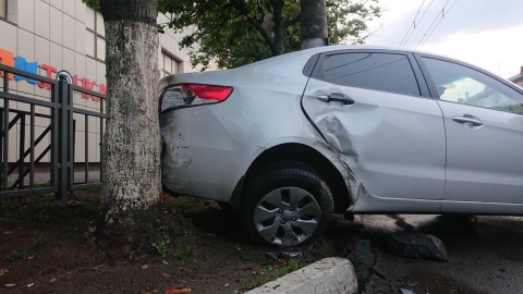 У KIA оторвано колесо, машина влетела задним бампером в дерево.