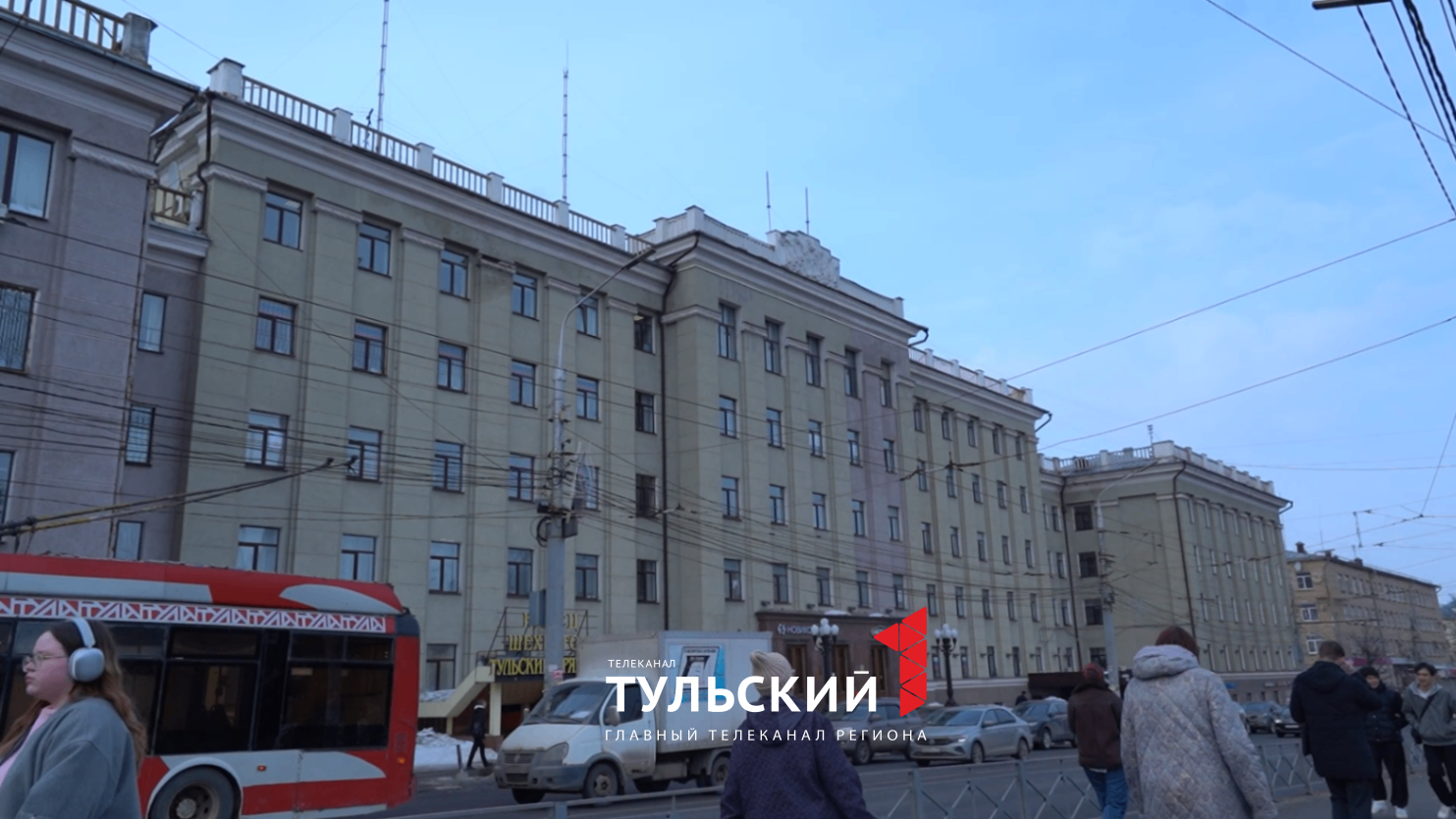 Еще один пример сталинского ампира. Это здание, которое исторически принадлежало комбинату «Тулауголь». Сейчас в нем располагается наш телеканал и различные офисы. Это самая протяженная постройка в квартале — ее длина составляет 135 метров.