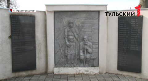 Деревянный дом, на скамейке сидит старик, а рядом стоит старушка и обнимет внука. Сына на этом изображении нет – ушел на фронт. Живым оттуда так и не вернулся. Как и больше 100 человек, имена которых запечатлены на этой стеле. Ее больше 10 лет назад установили в парке села Архангельское Большой Тулы по просьбе родственников участников Великой Отечественной войны. Рядом поставили часовню для того чтобы проводить службы в память об усопших. Под такой сквер отвели половину парка. Планировали благоустроить и вторую часть. Но к работам так и не приступили.