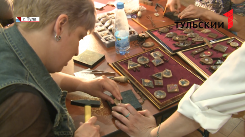 Тут же можно было попробовать силы в другом традиционном тульском ремесле – всечке. С помощью медной проволоки на деревянных оружейных прикладах тульские мастера с 18 века создавали прихотливые узоры.