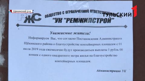 Коммунальную арифметику решают жители щекинской пятиэтажки. Они получили уведомления от своей управляющей компании о дополнительной плате за благоустройство контейнерной площадки. Люди посчитали, и у каждого набежала сумма, с которой они не соглашаются. По словам сотрудников УК, они запросили такую сумму для оплаты труда дворников. Их наняли для уборки контейнерной площадки.