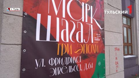 В Тульском музее изобразительных искусств теперь можно увидеть «Три эпохи» - так называется уникальная выставка Марка Шагала, которая совсем недавно располагалась в Эрмитаже. Как экспозиция попала в Тулу и в чём её особенность - расскажет специальный корреспондент «Первого Тульского» телеканала Юрий Безбородых.