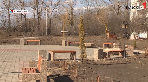 Этот сквер на улице Горького в Узловой появился по программе «Формирование комфортной городской среды». Его создание поддержало в голосовании большинство жителей. Над проектом подрядчик работал около полугода. В итоге на пустыре сделали 3 площадки: от 25 до 35 квадратных метров. Каждая – это отдельная зона: игровая - для малышей, спортивная - для подростков и зона тишины - для детей с родителями. Проект приняли зимой. Претензий к подрядчику тогда не было.