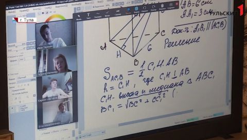 Как же проходит урок онлайн? У соседа не спишешь – это минус.  Зато к доске не вызовут – это плюс. Пока вместо этой самой доски  11-классник Иван Терёхин смотрит в монитор. Треугольники и другие фигуры учитель по ту сторону экрана выводит специальным устройством – стилусом. Ученики дублируют чертёж в тетрадях и сообща решают задачу. Педагогические приёмы работают, даже если коллектив  - это ряд окошек на экране.