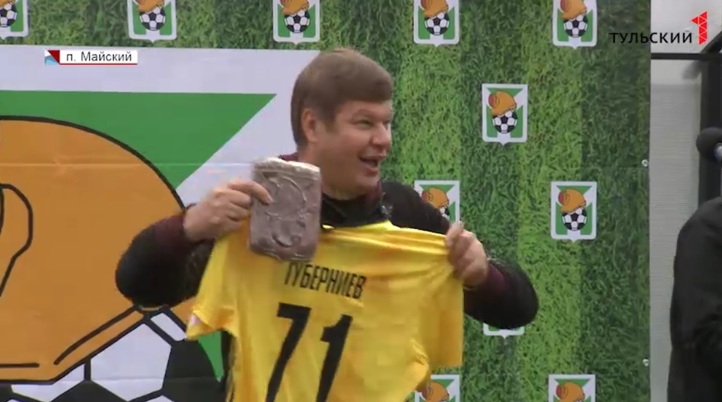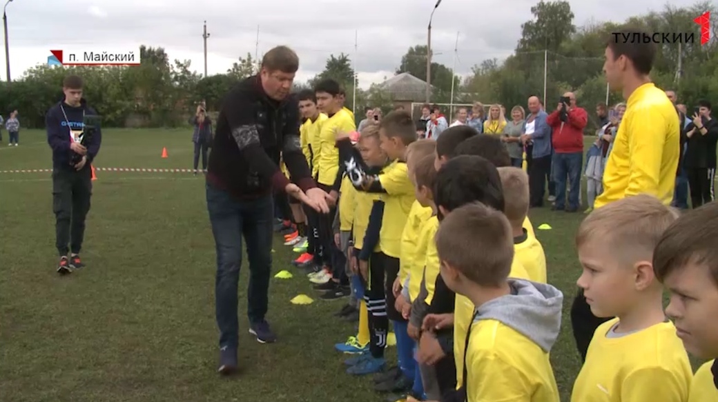 Узловский поселок Майский стал, говоря на спортивном языке, на целый пас ближе к большому футболу. Впервые за 70--летнюю историю в некогда шахтерском поселке открылась школа, где будут растить чемпионов. Уже сейчас набрали несколько групп - всего полсотни ребят. И заниматься они будут на местном стадионе им. Евгения Гвоздева, который как раз открыли после реконструкции. Там и провели первую тренировку. В ней не только поучаствовал, но и прокомментировал товарищеский матч Дмитрий Губерниев.