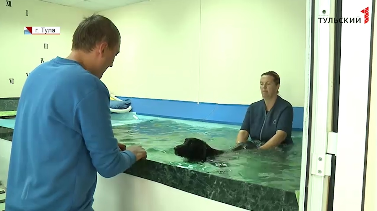 Процесс реабилитации у животного такой же долгий, как и у людей. Сначала бедренную кость Рею собрали в буквальном смысле по кускам, и установили металлический имплант. Месяц это срасталось - собака мало двигалась, потому в мышцах и связках понизился тонус. И чтобы его вернуть, псу как раз и делают массаж. Улучшают состояние и занятия в бассейне. То, что опасается сделать на суше, в воде пес демонстрирует охотнее. Потому реабилитолог – это не просто врач, но еще и психолог. Зная тонкости дрессуры, в тульском реабилитационном центре за год специалисты ставят на лапы около десятка животных. Многих из них хозяева даже хотели сначала усыпить, думали - не справятся. Ветеринары отговорили.