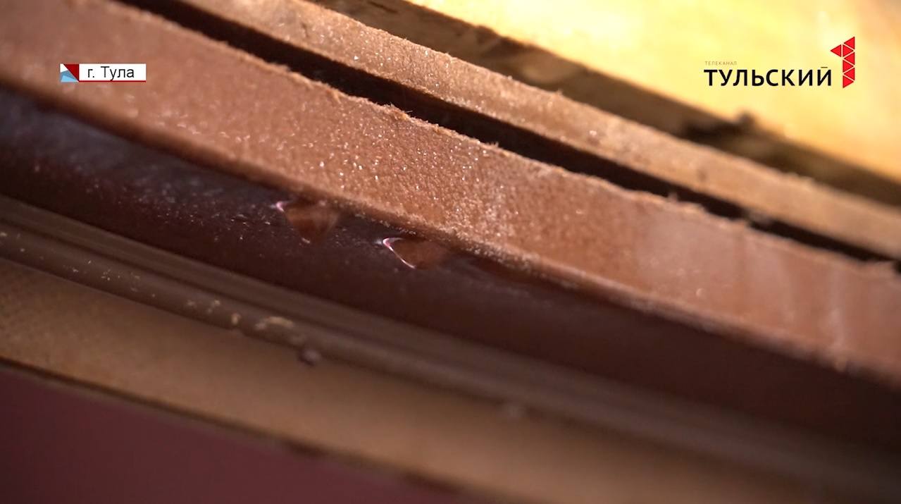 Весенний ручей в тульской многоэтажке бежит прямо по дверному косяку на пол и далее к соседям снизу. Течь в квартире берет свое начало на крыше, затекает на натяжной потолок и вытекает через стыки по стенам. Из-за короткого замыкания половина жилплощади уже обесточена. Входная дверь не закрывается, так как разбухла от воды.