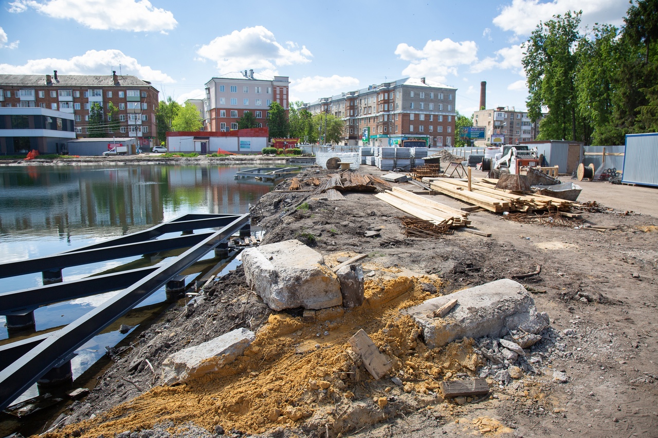На данный момент рабочие подготовили основание у здания дворца детского юношеского творчества под асфальтовое покрытие и обустроили парковочные карманы со стороны рынка. Раньше на этом участке возникали проблемы со стоянкой. Произведены также земляные работы на будущих тротуарных дорожках. Само обновление затронет площадь больше 5,5 гектаров. На территории появится крытый амфитеатр. Будет обустроена набережная с подходами к воде. Планируется, что это позволит проводить здесь выездные концерты и выставки.