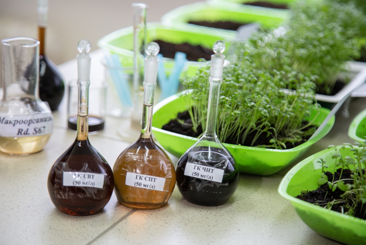Аспирантка тульского вуза Мария Герцен разработала природный сорбент, помогающий очистить почву от нефтепродуктов. В его составе сложная смесь кислот и различные микроорганизмы, способные разлагать «черное золото».  В разных пропорциях Мария добавила  вещества в 16 лотков, где растет крест-салат. Он относится к микрозелени. Задача – подобрать максимально эффективный состав, чтобы вредные примеси из почвы ушли. Там, где их меньше всего, салат вырос лучше.