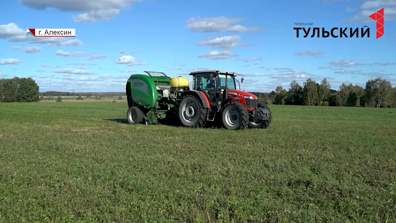 Человеку с косой на поле хозяйства под Алексином делать нечего – стебли поднимаются над землёй всего на 5 сантиметров. Зато современный пресс-подборщик легко укатывает в зелёные рулоны даже такую низкую траву. Меньше чем за минуту техника выдаёт 850 килограммов зелёной массы. Это уже третий покос – последний в этом году. Так в хозяйстве заготавливают сенаж – уникальный корм для жвачных животных.