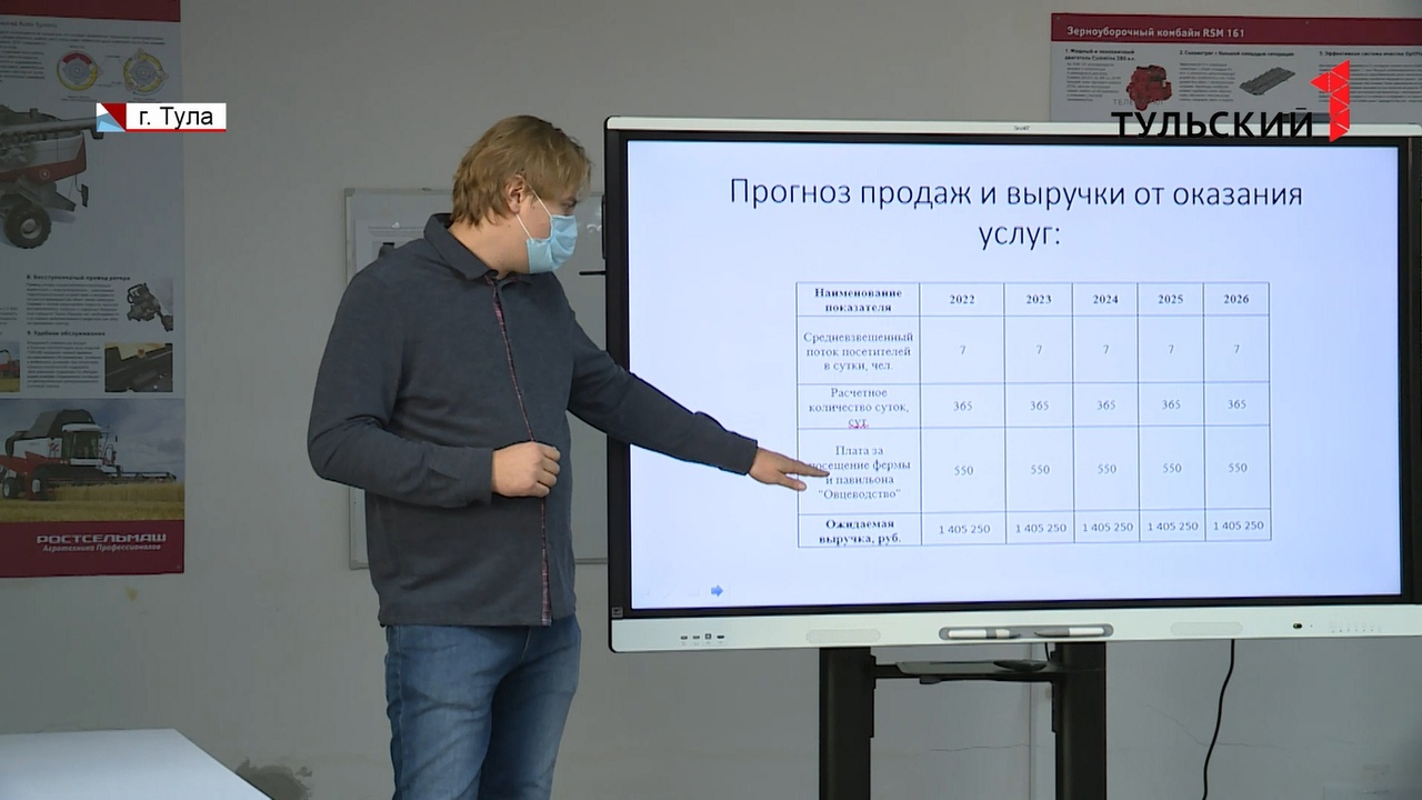 Туляк Павел Ляпин начал заниматься овцеводством год назад. Сейчас имеет 240 гектаров земли и 75 голов скота Ташлинской породы. Она знаменита отличными мясными качествами, шерстью, молочной продуктивностью и беспроблемным размножением. Павел уже продумал, как повысить эффективность работы своей фермы. Хочет включить ее в агротуристический маршрут. Знания получил в первой в Туле "Школе фермера" в сельхоз колледже. И теперь представляет свой бизнес-план на итоговом экзамене.