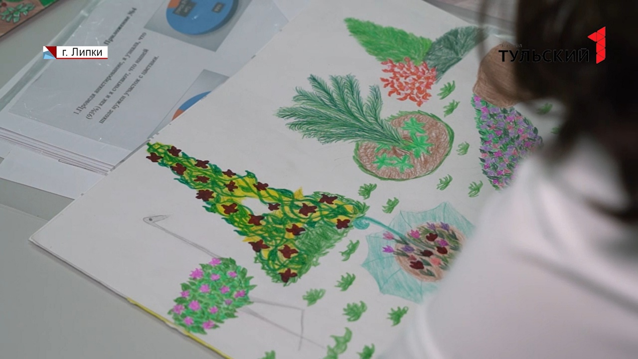 По количеству рисунков на парте – можно подумать, что идет урок ИЗО. На самом деле – 15-летняя Дарья Фадеева обсуждает с учительницей, каким хочет видеть школьный двор. Варианты(эскизы) девушка набросала на бумаге. По ним впору изучать биологию. По задумке Дарьи, территория учебного заведения должна превратиться в зеленый оазис. Ландшафтный дизайн оценили на международном уровне. Проект по благоустройству школы города Липки – отметили на премии «Мы вместе».
