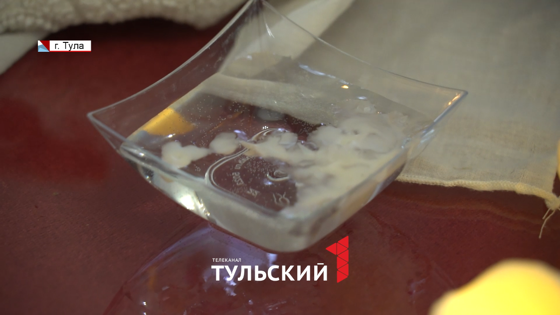 К святочным гаданиям участницы тульского фольклорного ансамбля «ладушки» пришли подготовленные, принесли с собой специальные атрибуты. Все они накрыты платочком, нужно указать на конкретный. Если достанешь кольцо, то жди счастья в любви, если пшено – благополучия, монету – богатства, веревку – дальнюю дорогу.