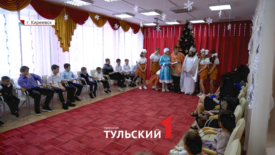 Сейчас в реабилитационном центре Киреевска живут 24 ребенка. Новогодний праздник для них устроили воспитатели и волонтеры отряда «Город мастеров». Это они нарядились в сказочных героев и даже стали на время актерами. У новогодней елки разыграли спектакль о приключениях Снежной Королевы.