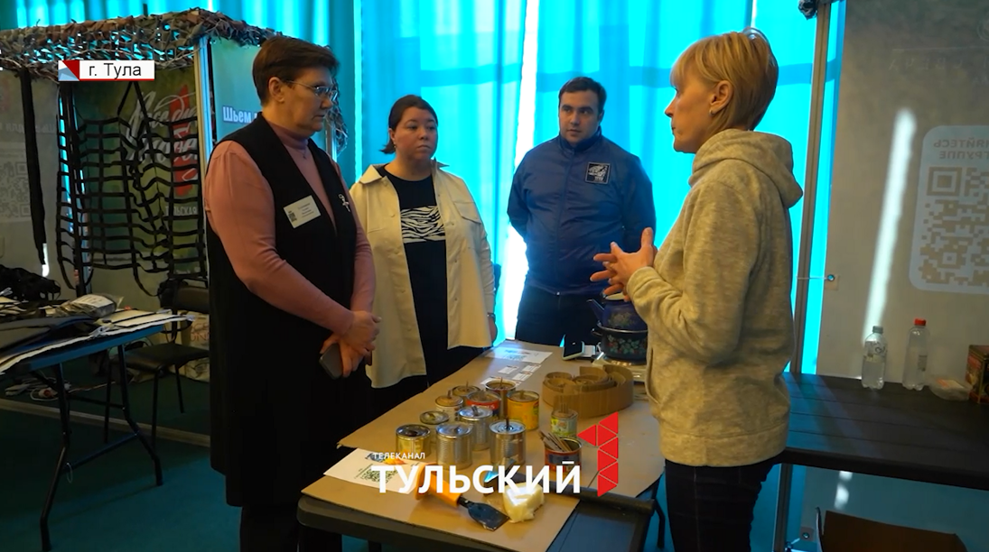 Простые туляки, общественные организации и частный бизнес сейчас делают одно общее дело. Собирают и доставляют гуманитарную помощь, шьют балаклавы и вяжут маскировочные сети или делают окопные свечи. Примеры своих работ туляки представляют на выставке. Так Светлана Лихолетова через соцсети смогла объединить тех, кто умеет держать в руках спицы. Сейчас к ее сообществу присоединилось больше 100 человек, а чердак частного дома заполнен собачьей шерстью. Из нее вяжут носки и теплые пояса для бойцов.