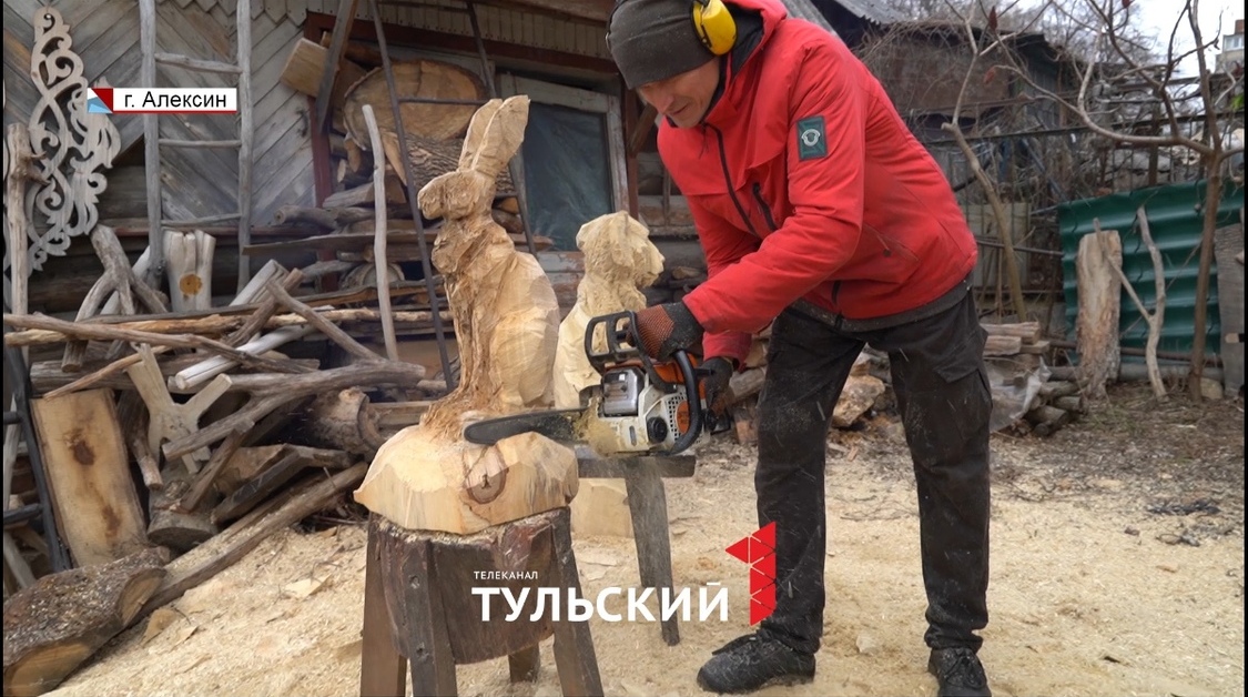 Как сделать деньги на валежнике и пнях? Алексинский мастер превратил эти предметы в средство заработка. У природы Владимир Филатов черпает и материал, и вдохновение. При этом ни одно растение во время творческого процесса не пострадало. Бензопила, словно волшебная палочка, превращает обычный с виду пень в произведение искусства: от логотипа телеканала «Первый Тульский» до масок из дерева для интерьера кафе и охотничьих домиков.