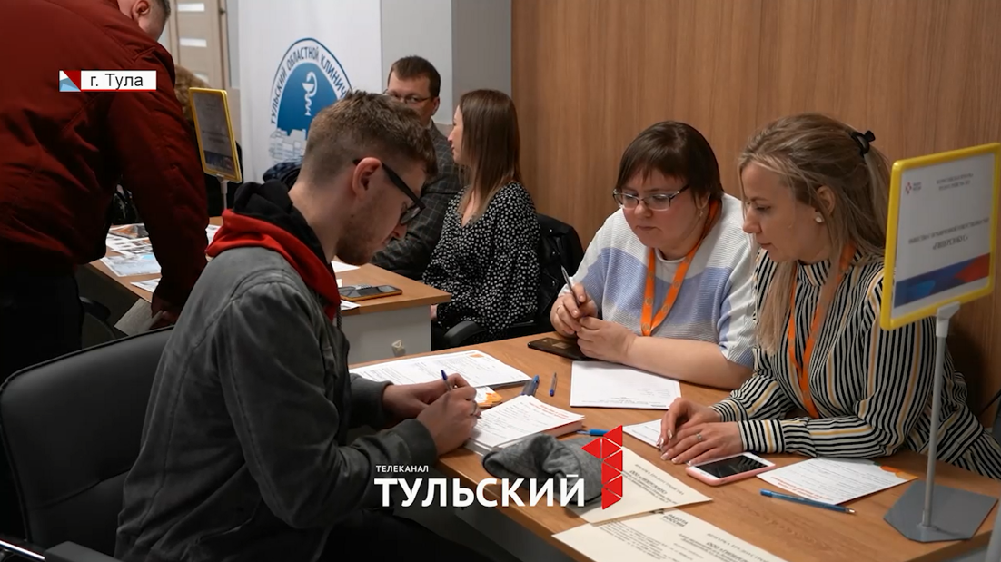 Здесь, как и на обычной ярмарке, не протолкнуться. Вот только на этой вместо товаров предлагают вакансии. За каждым столиком с эмблемой предприятия – меню из десятков предложений. На самый притязательный вкус: в ассортименте 7,5 тысяч вакансий. Так в Туле проходит региональный этап Всероссийской ярмарки трудоустройства. В центре занятости собрались представители разных организаций региона в поисках новых кадров. Соискатель Максим Ятин раньше работал водителем «скорой». А теперь собирается служить по контракту.