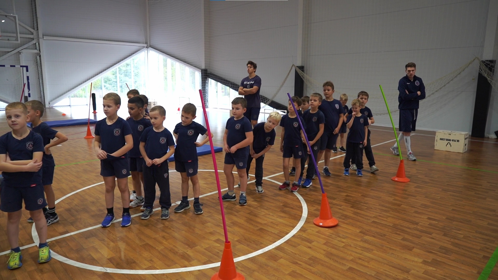 Тренировки для малышей выстраивают по-особенному. Сначала ребята разминаются в спортивном зале на так называемой «земле». Тренеры проводят общую растяжку и разминку. А чтобы отработать упражнения на быстроту реакции и скорость - делят ребят на команды и устраивают мини-соревнования. Все это занимает около часа. Затем юные спортсмены экипируются и выходят на лед.