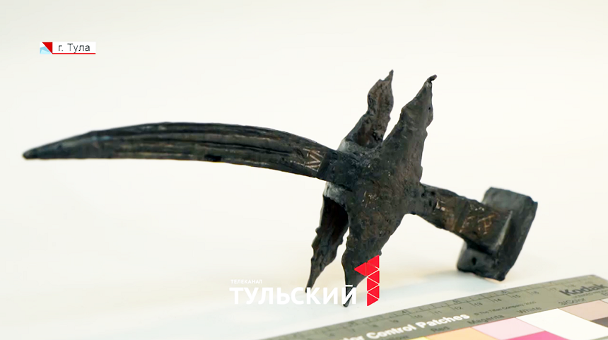 Этот клевец попал в коллекцию музея случайно. Археологи изучали древнее городище в Щекинском районе. И среди черепков X-XI веков нашли предмет из совсем другой эпохи. Пока историки датирует клевец смутным временем. Такое оружие предпочитала носить шляхта Речи Посполитой. Лёгкое, удобное, беспощадное.