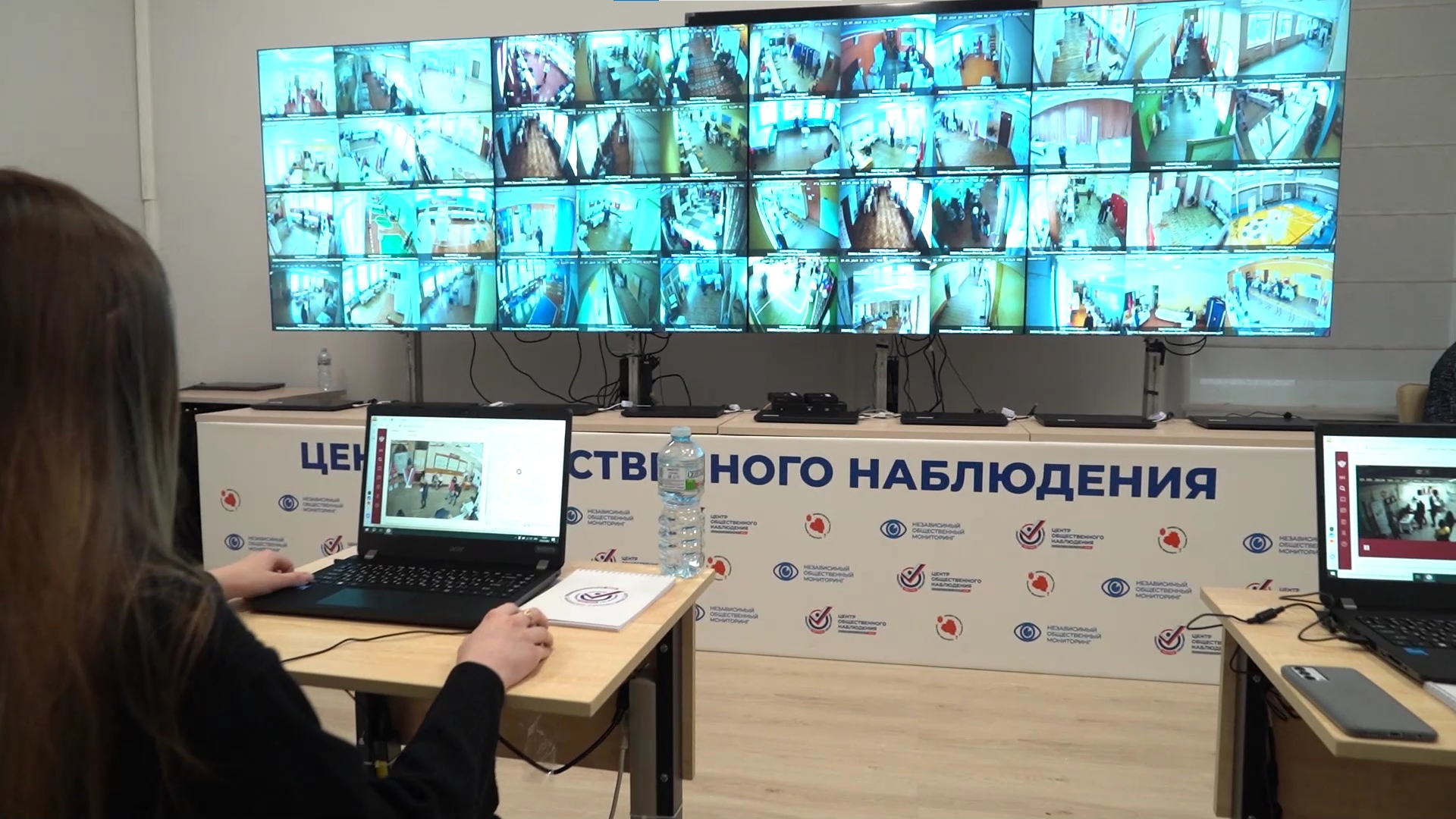 Система контроля хода голосования многоуровневая. Картинку с камер на участках транслируется не только на ноутбуки, но и на большой экран центра. Это сделано для удобства общественной комиссии. В неё входят представители общественного штаба и общественной палаты региона, некоммерческих организаций и всех желающих. Впервые центр общественного наблюдения был открыт на выборах в Государственную Думу в 2021 году, так что опыт его организации есть.
