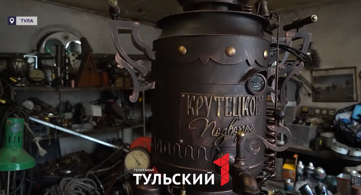 Это только с виду он напоминает тульский бренд – огромный самовар. На самом деле это полноценный самогонный аппарат. Только собранный из деталей металлолома. Их художник Кирилл Климов находит на пункте металлоприема. Привозит домой и пускает в дело. Так и получилось это пузатое чудо. Высота аппарата полтора метра, а весит он больше 80 килограммов.