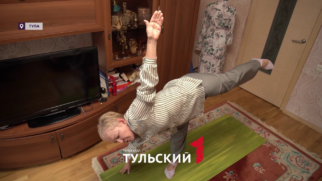 Такая асана в йоге называется полумесяцем, и в ней главное – уметь держать равновесие. Но сделать это не просто. Новички могут травмировать колени и суставы бедер. Поэтому выполнять упражнение нужно с инструктором. Но для 70-летней тулячки такие асаны уже стали частью утренней рутины. Минимум трижды в неделю женщина ходит на пилатес и йогу. И уже 20 лет каждый свой день начинает с занятий спортом.
