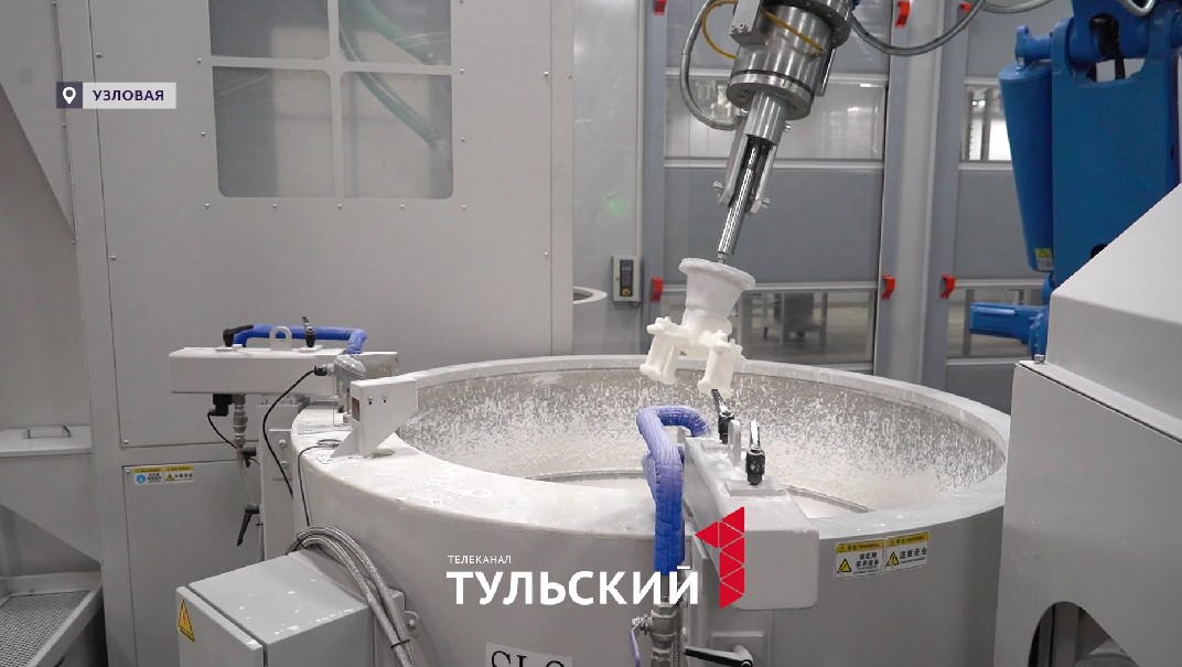 Этот процесс похож на работу миксера. Только вместо теста - керамическая смесь, а вместо венчика - заготовки лопастей для турбины. Такое - послойное покрытие поможет в работе охлаждать внутренние полости деталей - для долговечной работы аппарата. Новое промышленное производство запускают в особой экономической зоне «Узловая». Губернатор Дмитрий Миляев - первый знакомится со всеми этапами производства.