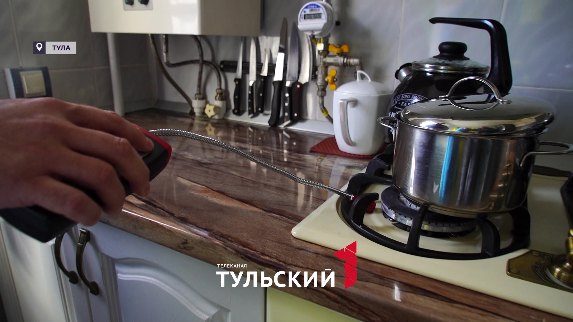 Утечку газа в квартире сотрудник газовой службы определяет на слух. Если сенсоры газиметра уловят отклонения от нормы - прибор запищит. Издавать мерные стучащие звуки он будет, если все в порядке - как на этой кухне. В пятиэтажке на улице Металлургов проходит плановый техосмотр газового оборудования. На месте слесарь - смотрит состояние газовой плиты и духовки, наличие вытяжки, срок эксплуатации колонки - по нормативам он не должен превышать 12 лет. Такой техосмотр "Тулагоргаз" проводит раз в год - чтобы убедиться в безопасности использования голубого топлива.