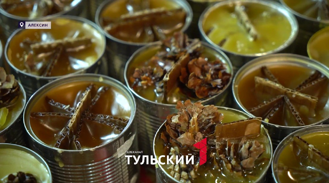 Это и правда, похоже на мини свечную фабрику. Окопные приспособления волонтеры из Алексина делают двух видов – обычные с картоном – его выкладывают снежинкой, свеча так медленнее горит, и с шишками – они источают приятный аромат, горят ярко и не коптят. Делать такие предложили сами бойцы. А женщины продумали методику: они нарезают пищевой парафин, именно он при горении не выделяет вредных веществ. Его варят, а для вязкости в чайник добавляют свечные огарки из церкви. Спустя 10 минут после растворения словно чай разливают по металлическим баночкам. Причем, из церковных огарков остаются нитки, пропитанные воском, их женщины не выкидывают – мастерят шарики. И уже за ленточкой бойцы берут их с собой на задания, поджигают и согреваются.