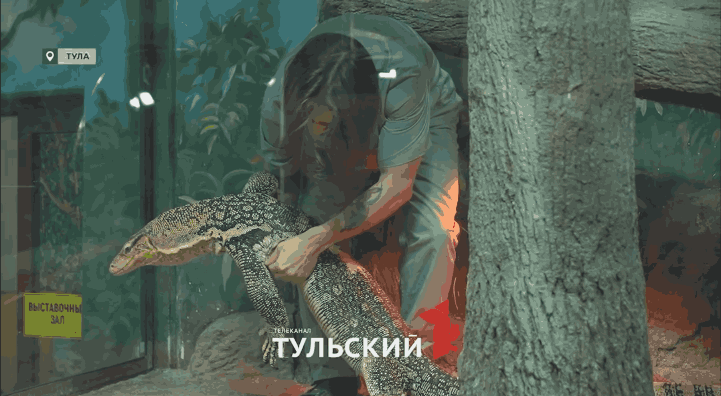 Пустить в вольер и тем более обрывать старые чешуйки со спины варан в тульском экзотариуме дает далеко не всем. Но с Максимом Булдаковым они знакомы уже не один год. Потому рептилия спокойно реагирует на гостя в своем жилище. Основная работа ведущего зоотехника – присматривать за местными обитателями. Даже если речь идет о растениях. Листья драцены от ежедневного полива лучше растут. Но есть у местного специалиста и другая сторона работы.