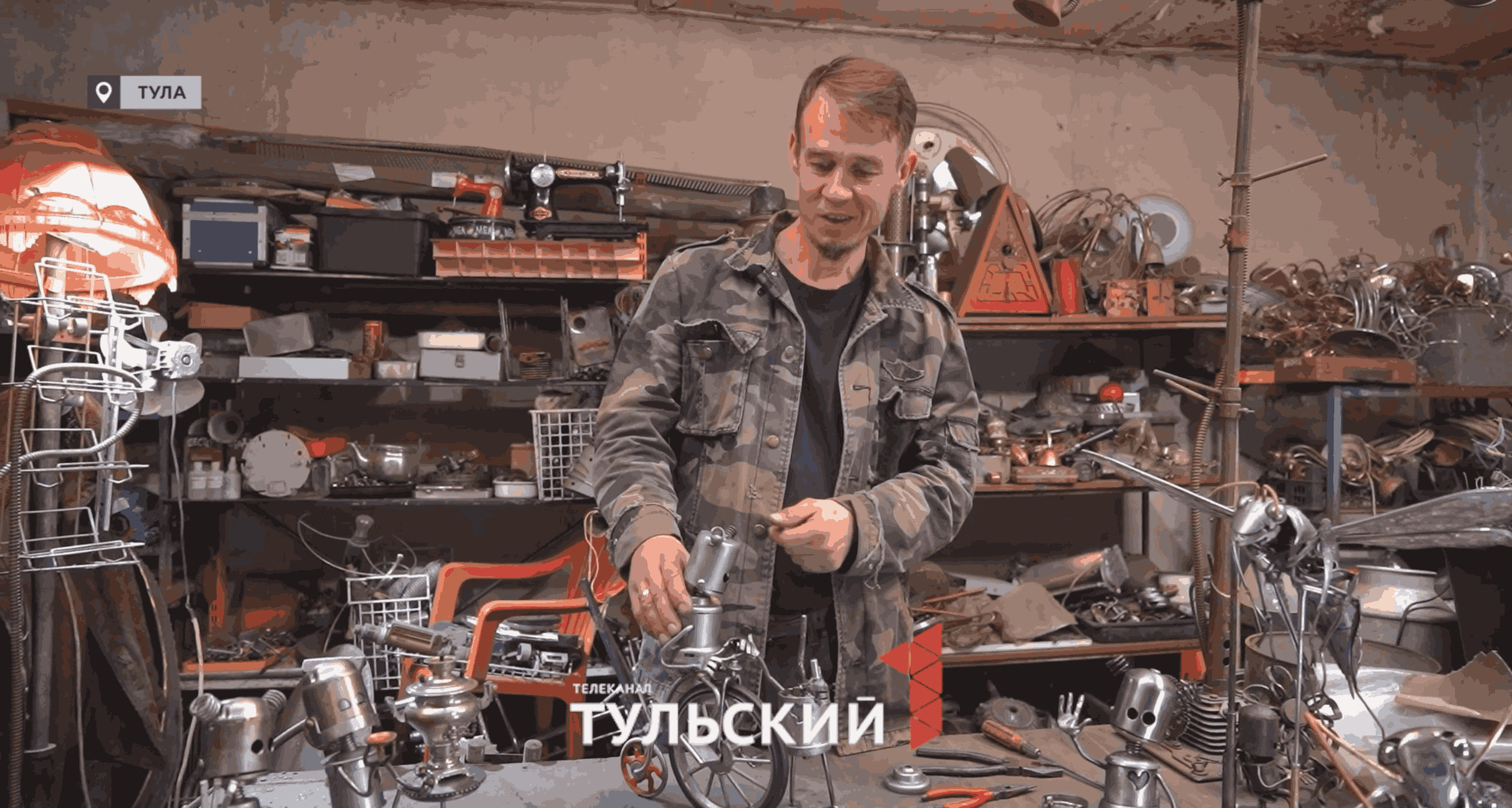 Приручил металл Кирилл лет 7 назад. До этого писал картины и работал с глиной. Но проба в новом амплуа удалась. С тех пор делает артобъекты на заказ и для души. Есть работы мастера и на городских улицах. Но дорогие сердцу - оставляет себе. Самая маленькая композиция высотой - около полуметра, самая больше - больше двух метров. Но душа вложена в каждую.