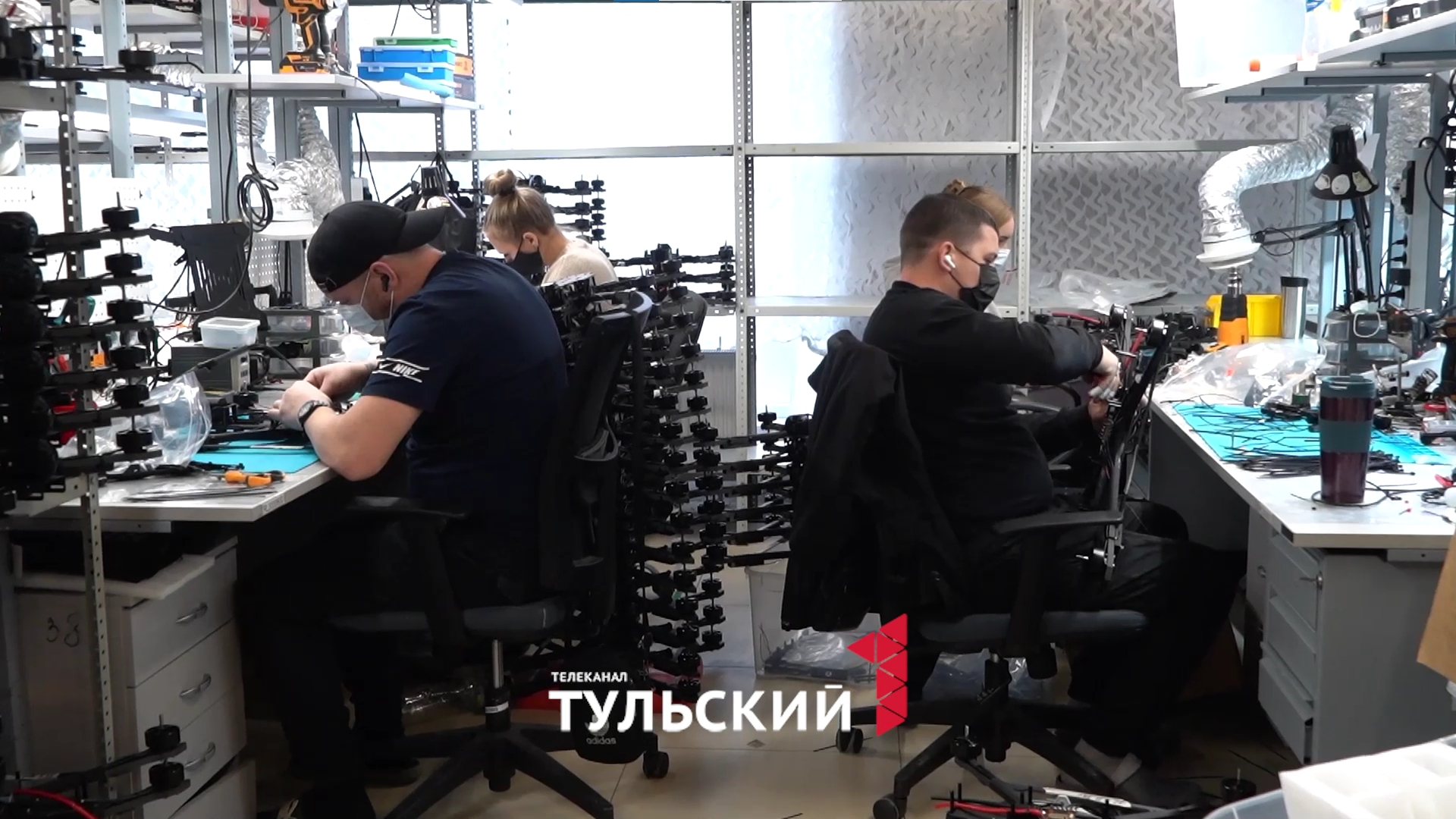 В итоге туляк занял 1-ое место. На соревнованиях от Минобороны Лев выступал в составе гражданской команды от производителей легендарного "Овода". Дрона способного выполнять любые задачи в зоне СВО. Одна из последних разработок компании - высокоскоростной дрон-перехватчик. Его собирают в этом цеху. Первую массовую партию «перехватчиков» уже отправили за ленточку. Так что на производстве остался только опытный образец.