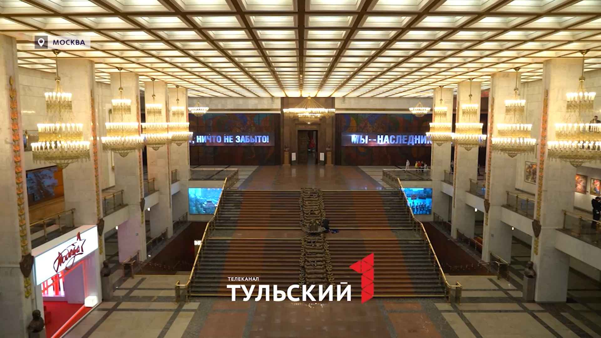 Монументальный клинок за стеклом на красном бархате - словно воплощение всего героического прошлого города оружейников. Этот Меч Победы выковали на заводе Штамп к 50-летию триумфа над фашизмом. Теперь это один из главных экспонатов выставки Тула - город-герой, которую открыли  в зале Славы московского Музея Победы на Поклонной горе.