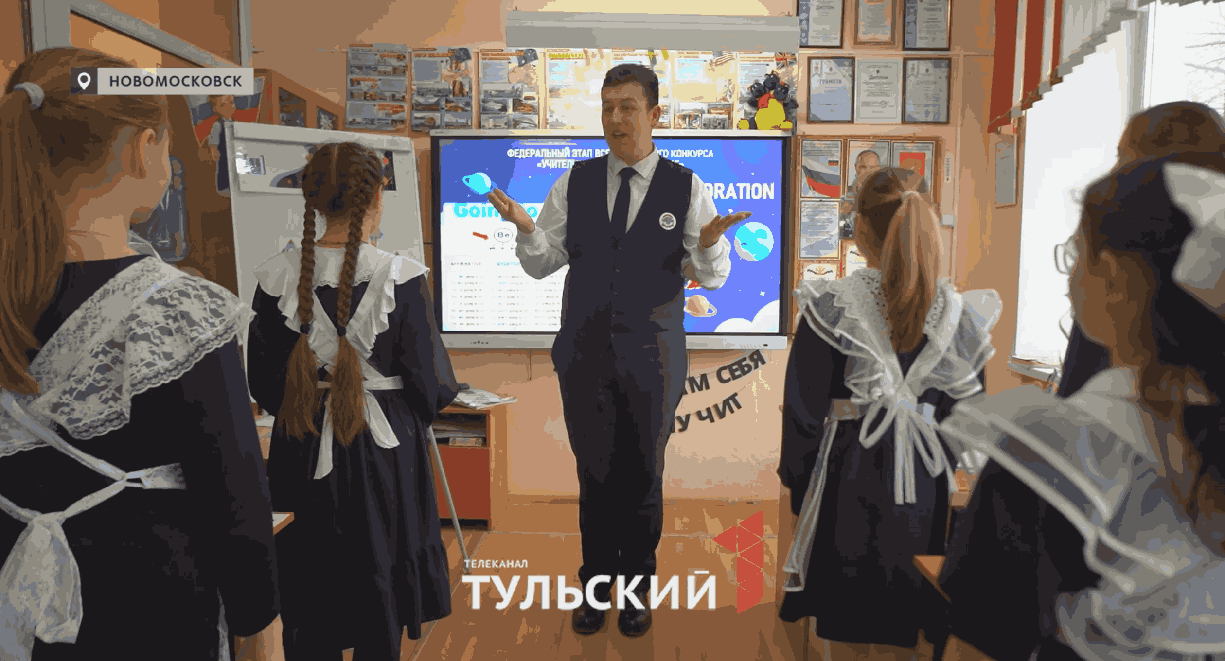 Такой активности нет в расписании, но урок у пятиклассников начинается с небольшой ритм-паузы. Учитель Григорий Голубков напевает песню на английском и добавляет простые движения. И для здоровья полезно, и слова легче запоминаются, да и класс сразу оживает. Двух минут разминки хватает, чтобы вернуть внимание ребят. Тем более что это уже третий урок подряд, а значит, дети провели за партой несколько часов. Так учитель английского из Новомосковска поддерживает рабочий ритм школьников короткими, шутливыми переменками, которые ученикам особенно полюбились.