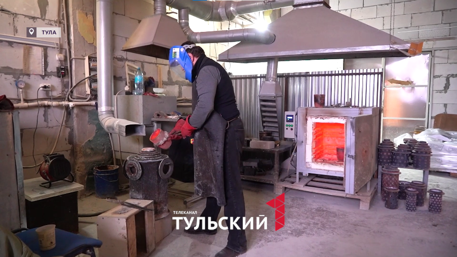 Так смесь будет равномерно покрывать будущую заготовку, а пузырьки воздуха не станут причиной брака. Ведь после того, как смесь застынет, форму отправят в специальную ванну на несколько часов. За это время воск растопится и выйдет из нее. А место воска займет уже металл. Тульские мастера используют для этого латунь. Она быстро нагревается, а значит долго топить самовар, чтобы вскипятить воду, не придется. Но вернемся к деталям. Такой же путь пройдут все 11 будущих элементов самовара. У этого экземпляра их на один больше чем у обычного тульского.