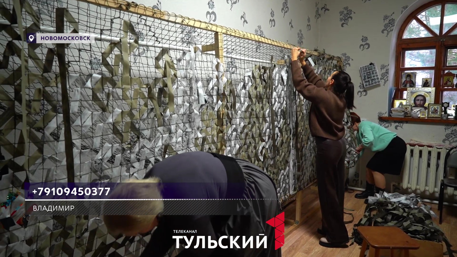 То, что происходит на этих кадрах «на гражданке» – ускоряет победу там «за ленточкой», показывают волонтеры. Их станок – увеличивает скорость нарезки лент с получаса до пяти минут на моток. А значит, приступить к плетению маскировочных сетей удастся быстрее. Здесь под Новомосковском – за это отвечает более трёхсот человек. С началом специальной военной операции они оборудовали кельи Свято-Успенского монастыря под производство. А после – наладили его в больших объёмах.