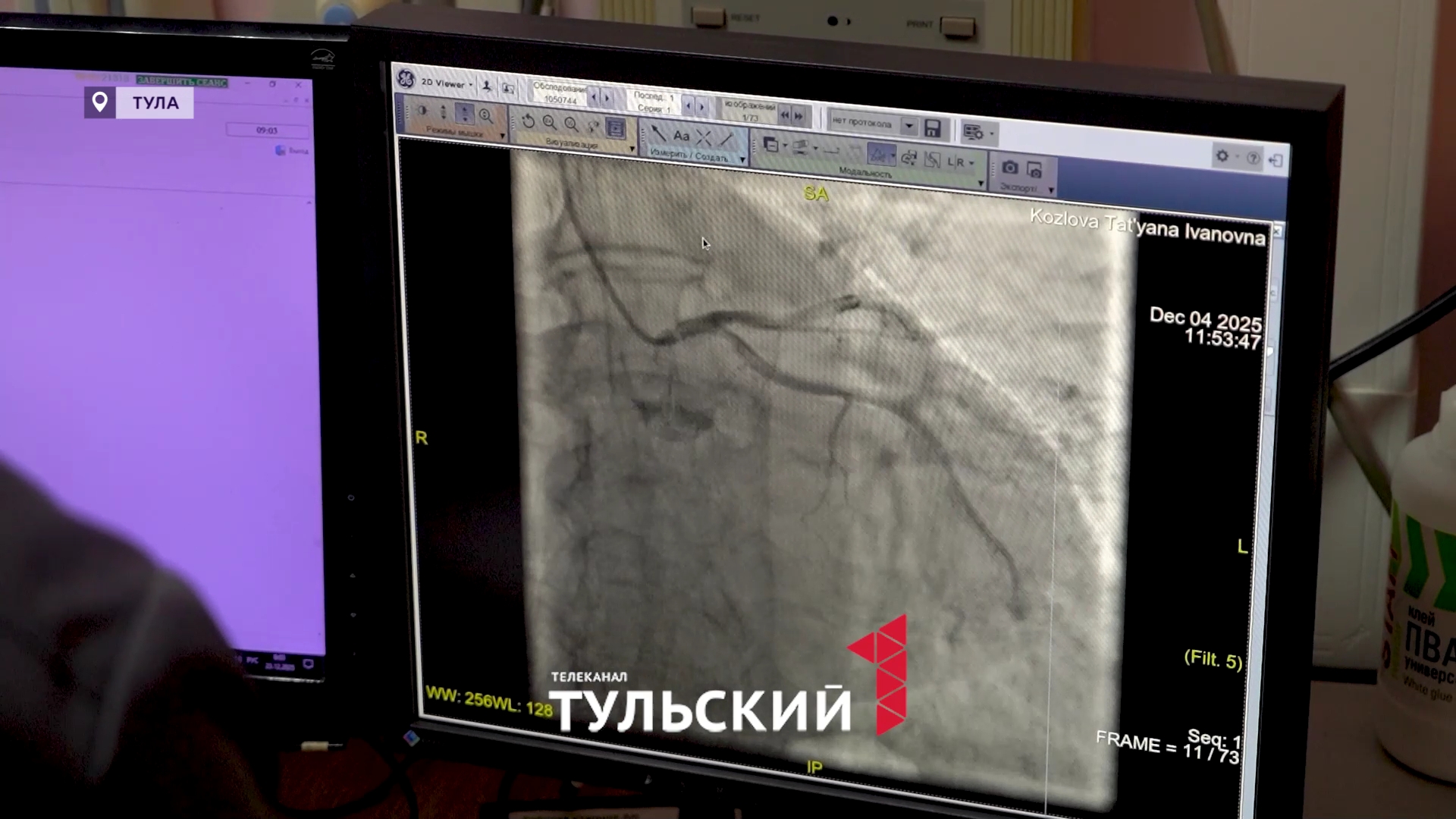 За ходом этой операции пациент наблюдает - лично. Он находится - в сознании. Но ощущает –боль в груди из-за проблем с сосудами. Просвет в них – пока минимален. А это грозит образованием тромба или инфаркта. На этих кадрах врачи Ваныкинской больницы снижают риск и того, и другого - с помощью специального прибора – ротоблатора. Он появился в больнице имени Ваныкина неделю назад, и стал настоящим спасителем: помогает быстро открыть закупорку сосуда в случаях, когда бляшка пропиталась кальцием и окаменела.