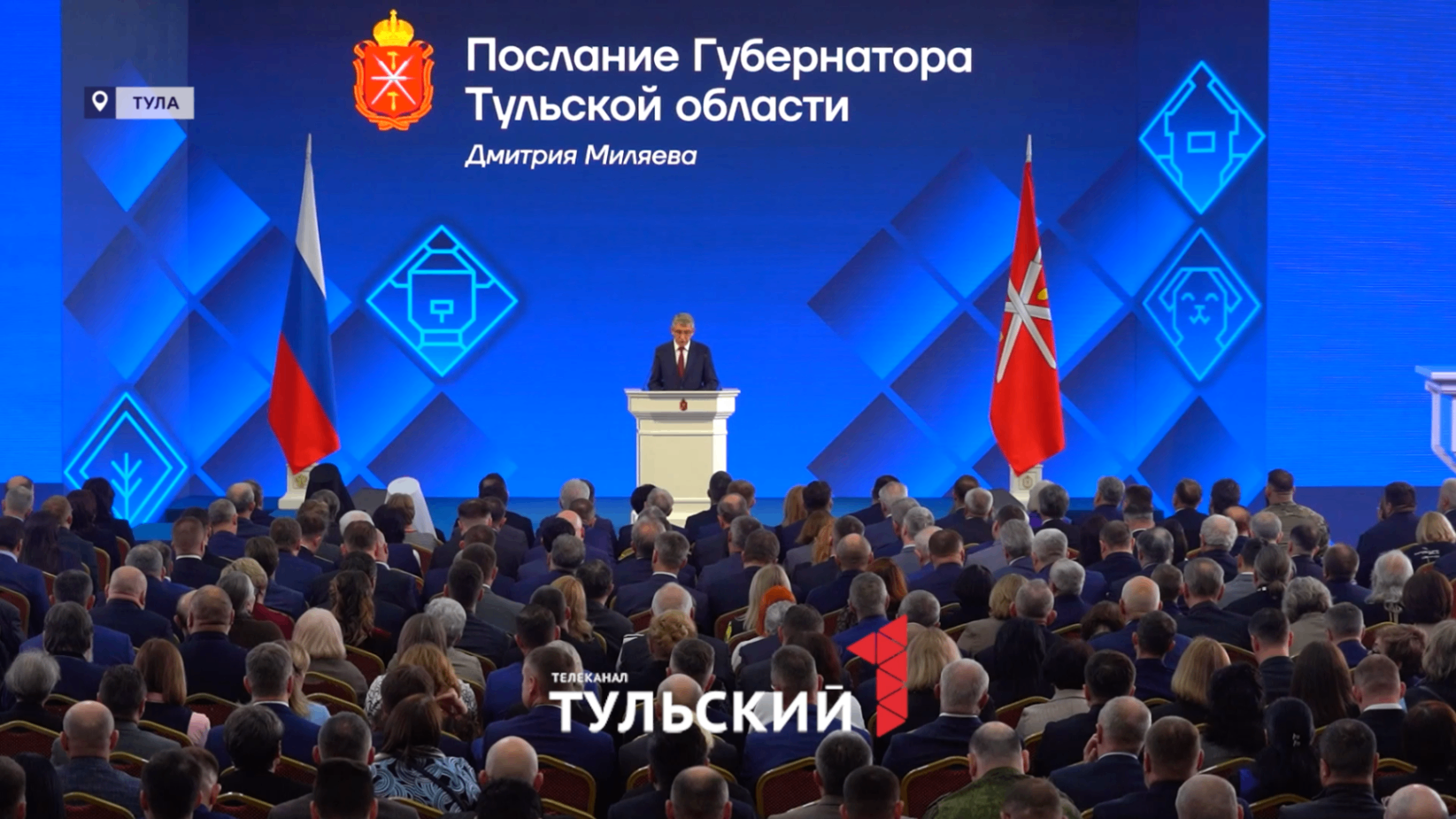 Вот так в сердце тульского кремля начинает биться сердце тульской области. Это символ нового маршрута к территории семейного счастья. Ею должна стать вся Тульская область. Об этом со сцены в своем первом послании говорит Губернатор Тульской области Дмитрий Миляев. Впервые как глава региона он обращается именно к людям, а не к представителям законодательного собрания.