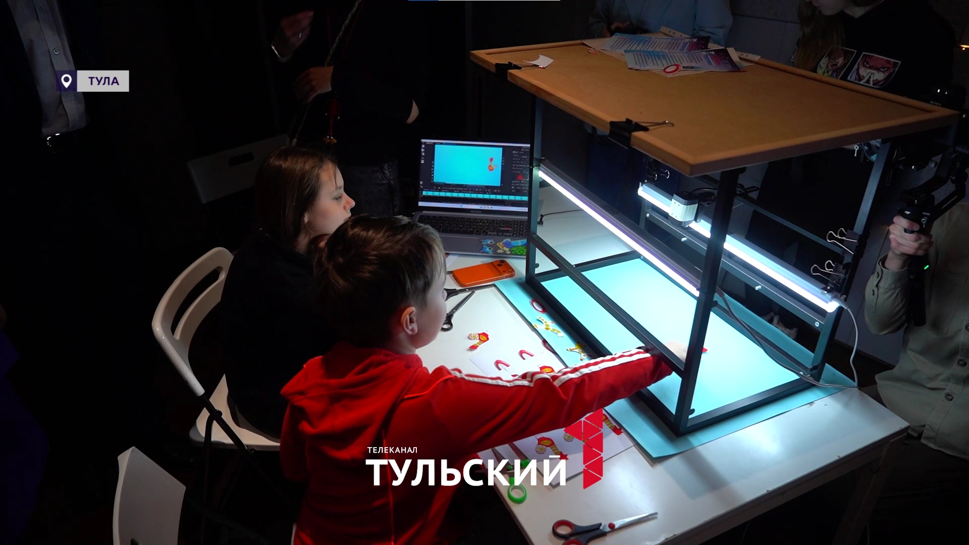 Фестиваль "МультЗима" стал площадкой и для тех, кто мечтает создавать мультфильмы сам. Для них подготовили специальные мастерские. В этой например, учат перекладной анимации. Эта техника, когда героев перекладывают с одного места на другое. При этом каждое передвижение снимают на камеру. И потом получается полноценный мультфильм. А героями первых анимацией туляков стали местные бренды пряники, самовары, чай, филимоновские игрушки. Уже готовые работы ребята показали почетным гостям фестиваля: министру культуры и туризма Тульской области и генеральному директору "Союзмультфильма". Они тоже когда-то были детьми и хорошо помнят "силу" мультфильма.