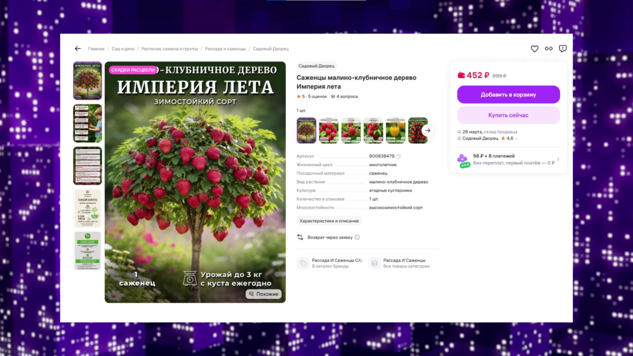 На маркетплейсах реализуют малиновые деревья с 500-граммовыми ягодами