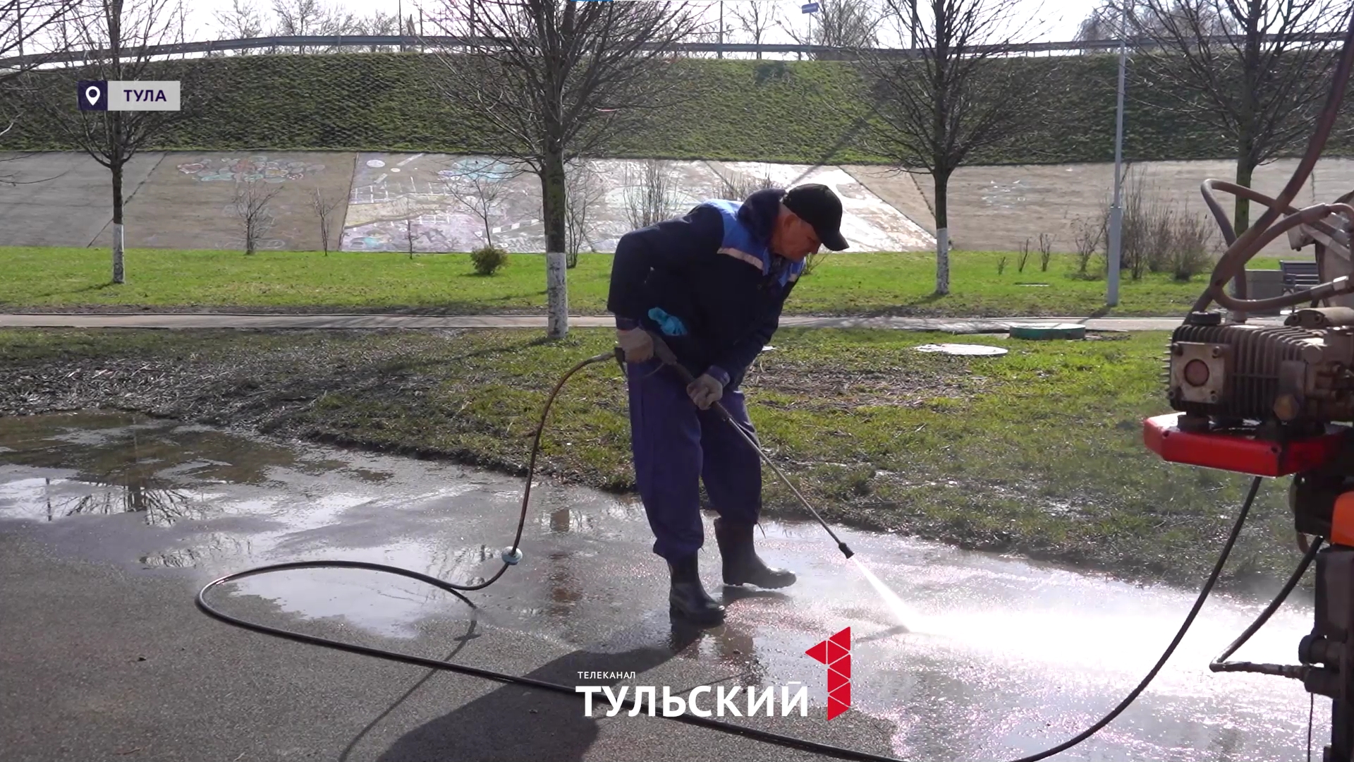 Как только вода начала отступать - сюда пришли люди. Всего 10 человек, но они вывезли 20 кубометров мусора и сухостоя. Не больше и не меньше, чем в годы, когда эти территории также затапливало. Для промывки дорожек, спортивной и детской площадки от ила и грязи рабочие использовали спецтехнику. Иногда ее приходилось заправлять по несколько раз. Осталось убрать смотровую площадку у реки - здесь вода пока не ушла. За последние сутки уровень воды над нулем графика поднялся на 2 сантиметра.